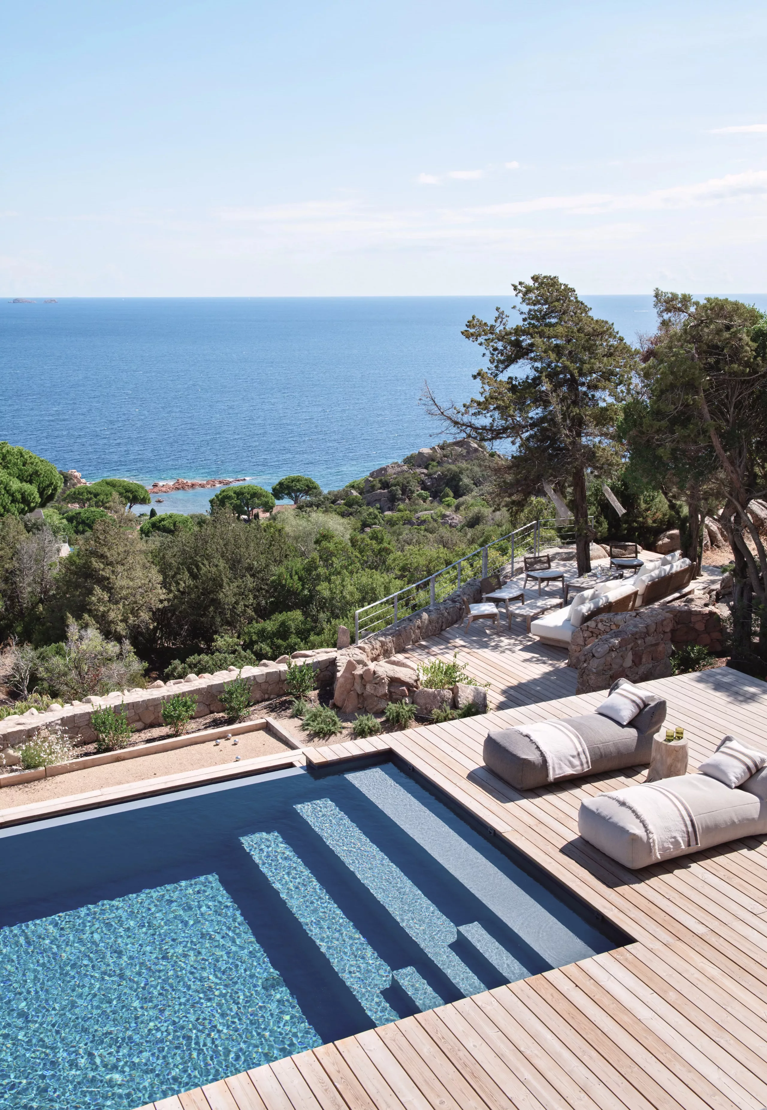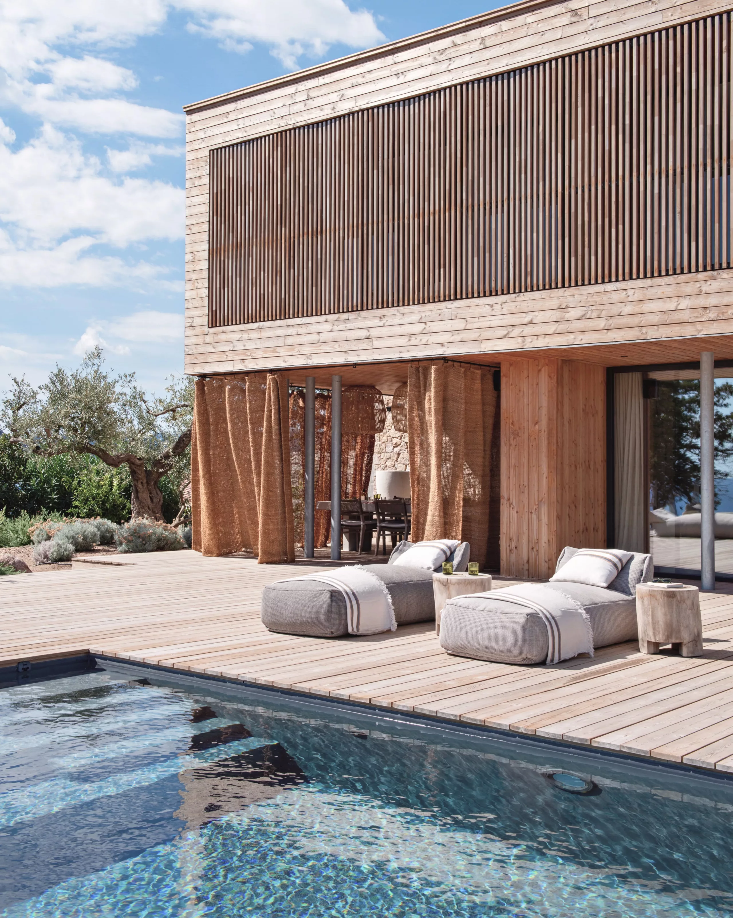 Casa di Legna est une maison méditerranéenne en bois, pensée comme une parenthèse enchantée. Un refuge lumineux, entre mer et maquis, qui célèbre l’été et l’évasion. Ici, chaque détail invite à ralentir.