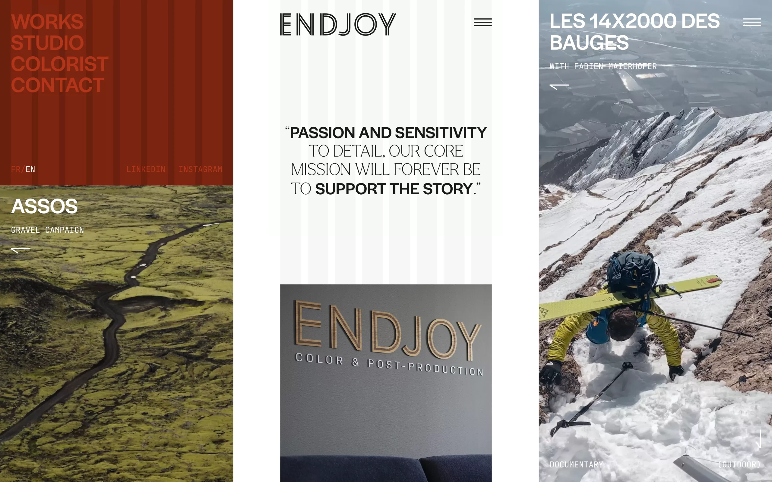 Grâce à une approche sensible et exigeante, Endjoy accompagne les réalisateurs dans la dernière étape créative, celle où la lumière, les contrastes et les nuances chromatiques donnent toute leur force au récit. Chaque plan est travaillé avec précision pour renforcer l’intention artistique, amplifier les atmosphères et faire vibrer les émotions à l’écran.