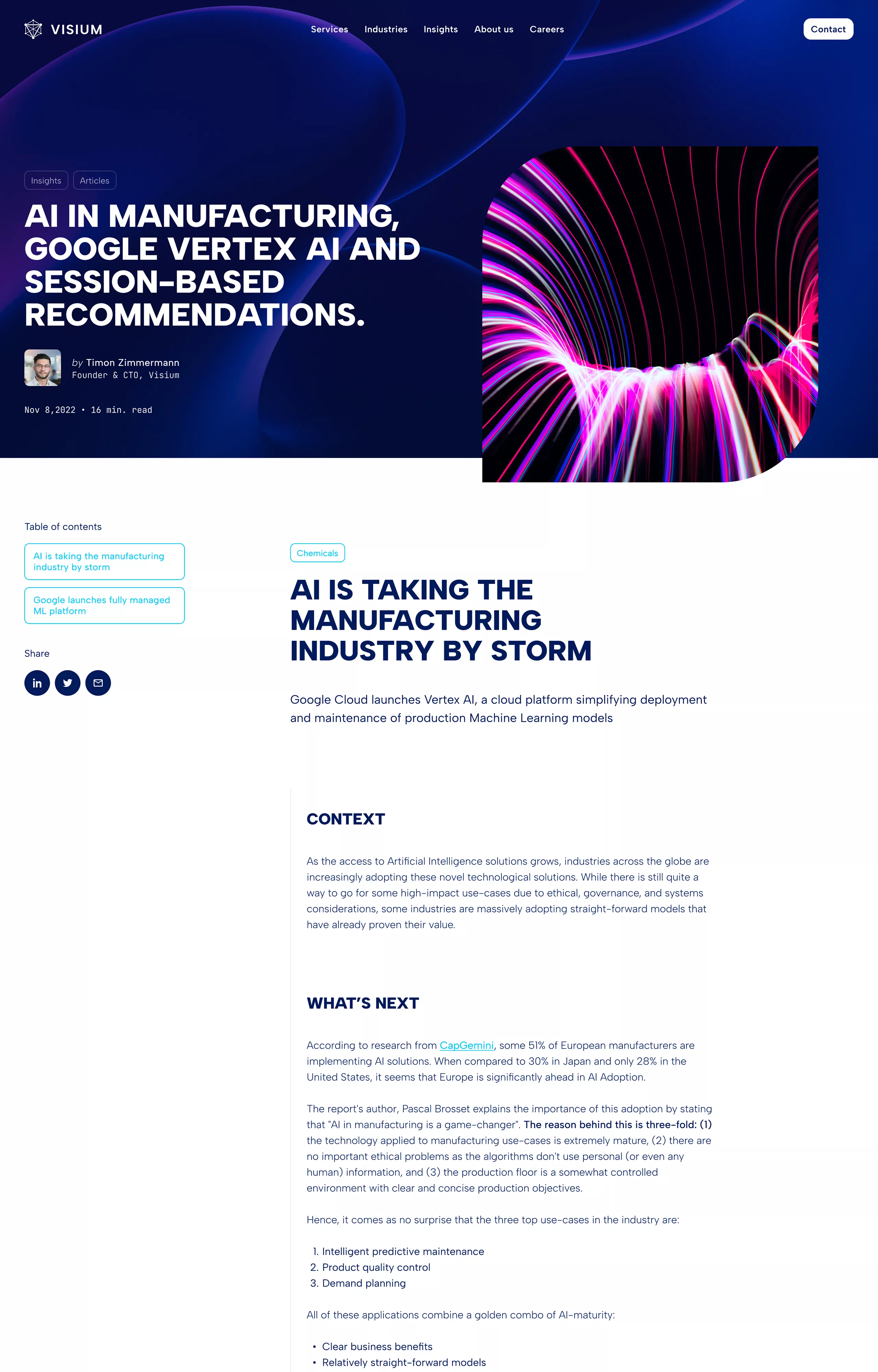 Visium est une startup suisse dynamique, avec plus de 60 experts en IA et data. Elle accompagne les grands comptes dans l’exploitation de leurs données pour stimuler l’innovation, accélérer leur transformation digitale et générer une croissance durable.